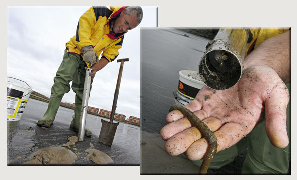 Si estás recogiendo cebo con un amigo, puede ser una buena idea que este vaya revisando la arena extraída.
